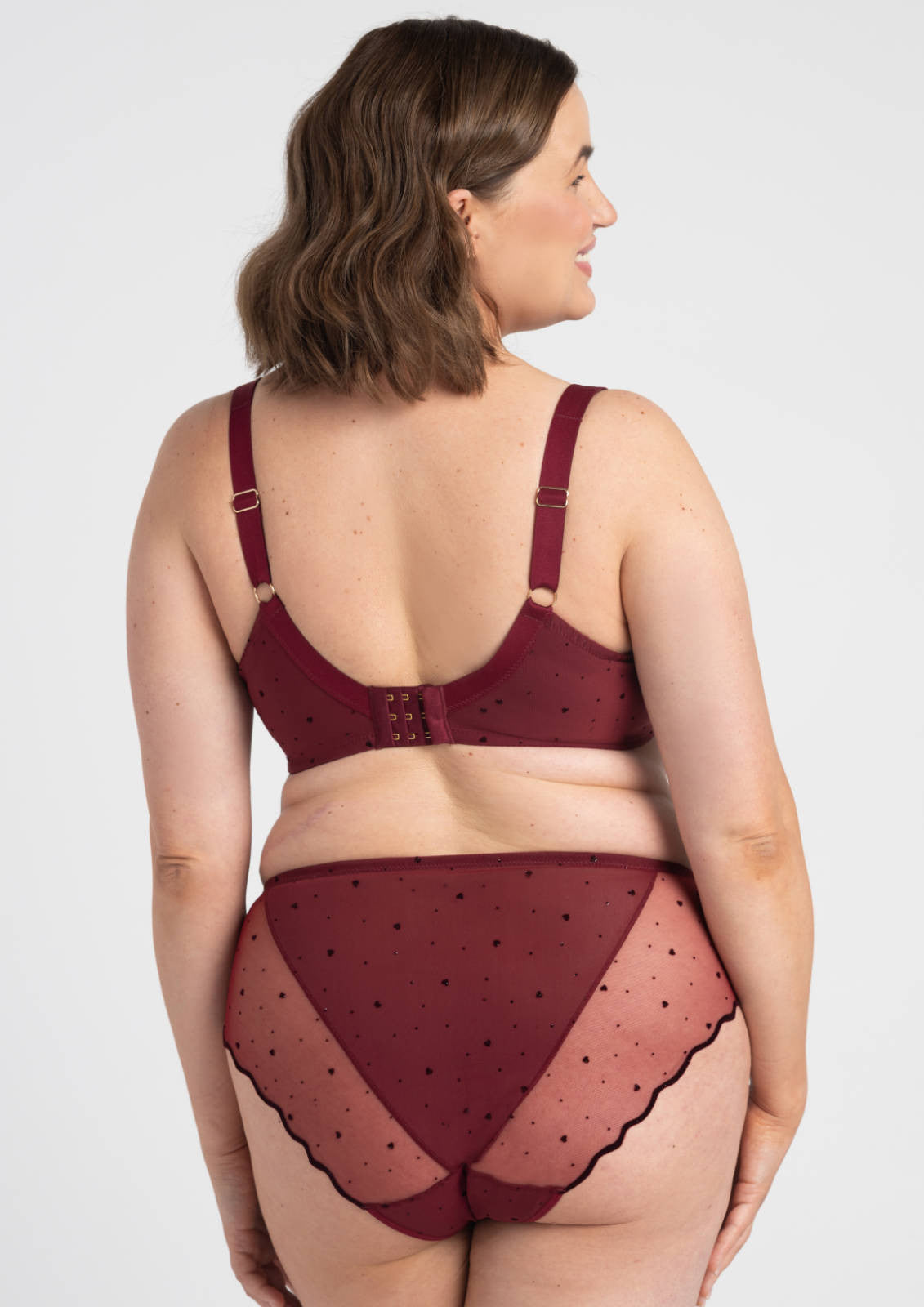 Die B400 Panty vereint Komfort und Sinnlichkeit in perfekter Harmonie. Mit ihrem leicht erhöhten Bund und der schmeichelhaften Passform umhüllt sie sanft Hüften und Po, ohne einzuschneiden oder zu verrutschen. Die luxuriöse, italienische Flockspitze mit zarten Herzmotiven verleiht dem Design eine romantische Note, während die weiche Baumwolle im Zwickel für maximalen Tragekomfort sorgt.