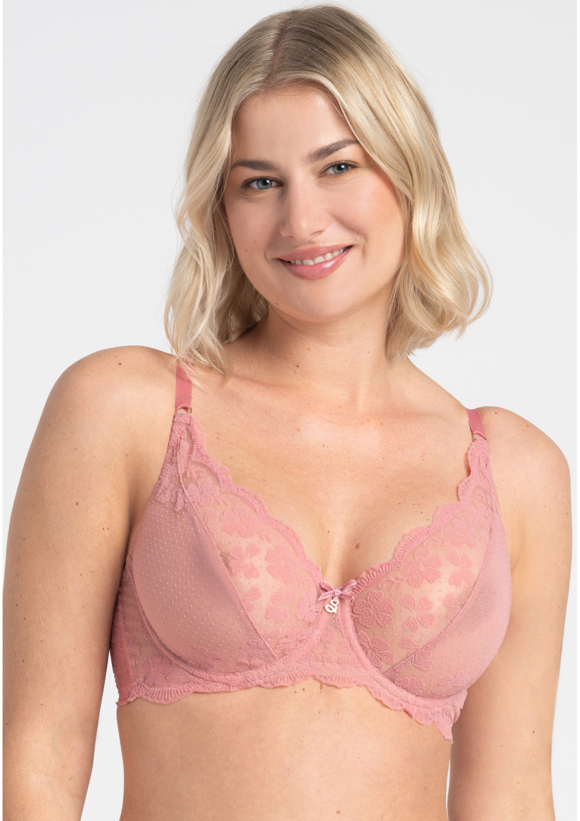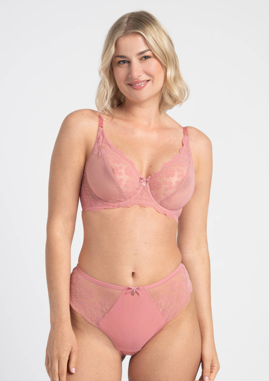 Zur Linie „Rose“ Rose begeistert mit flockierter italienischer Spitze im floralen Punktmuster und einem warmen Roséton, der der Lingerie eine romantische Note verleiht. Die dezente Transparenz unterstreicht die Leichtigkeit des Designs. Diese Linie ist die perfekte Basis für eine feminine Garderobe — weich, komfortabel und wunderschön für jeden Tag.
