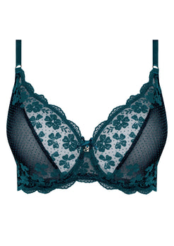 Die Cups aus zarter, flockierter Spitze mit Blumen- und Pünktchen-Motiv erzeugen einen sinnlichen, transparenten Effekt auf der Haut und wirken wie ein filigranes Accessoire. Der hochwertige Spitzen-Bund ist federleicht, bietet dank hoher Grammatur aber zuverlässigen Halt.