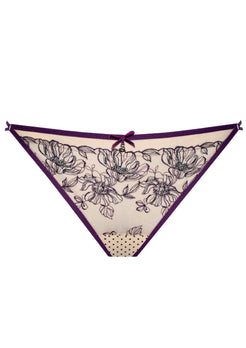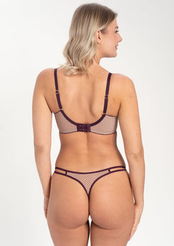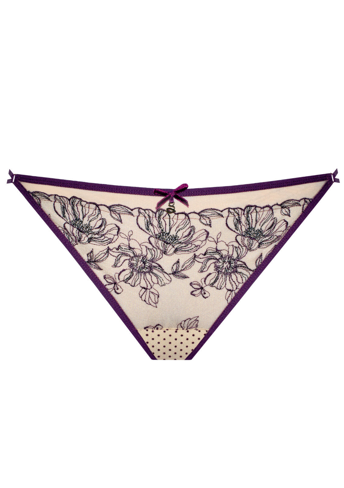 Erleben Sie den C300 Sivia: ein schlanker String, der mit zarter Blütenstickerei und tiefem Aubergine-Ton verführt. D...